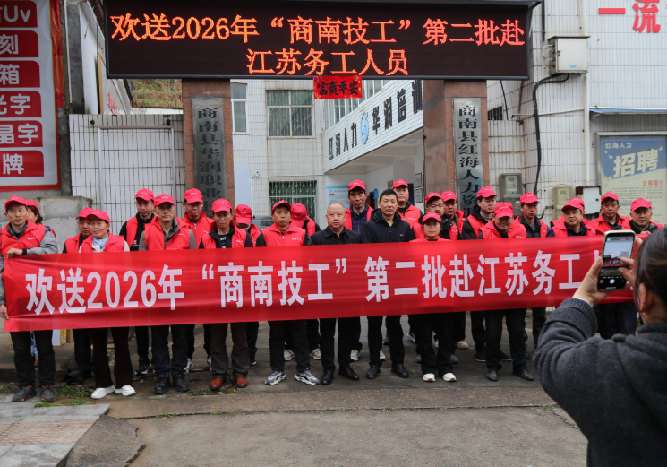2月26日上午,商南縣第二批“點對點”赴江蘇務(wù)工人員專車在紅海人力資源公司發(fā)車。