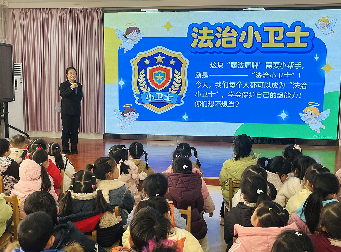 活動伊始,鎮(zhèn)坪縣幼兒園園長劉其榮為法治副園長王荔鄭重頒發(fā)聘書,正式拉開了法治護航萌娃成長的序幕。隨后,檢察干警化身超有親和力的“法治向導”,通過趣味提問、生動比喻、兒歌傳唱等形式,為孩子們帶來了一堂精彩紛呈的法治小課堂。課堂上,檢察干警將抽象的“規(guī)則”與“法治”轉化為幼兒易懂的“隱形小路”和“安全魔法盾牌”,并借助“規(guī)則小法官”互動游戲、自我保護情景模擬等環(huán)節(jié),引導幼兒辨別是非對錯,掌握自我保護方法,學習尊重他人的禮儀規(guī)范?;顒幼詈?,全體幼兒莊嚴宣誓成為“法治小衛(wèi)士”,老師們?yōu)楹⒆觽兣宕鲗倩照?,“法治小明星”展示欄同步啟用?/p>